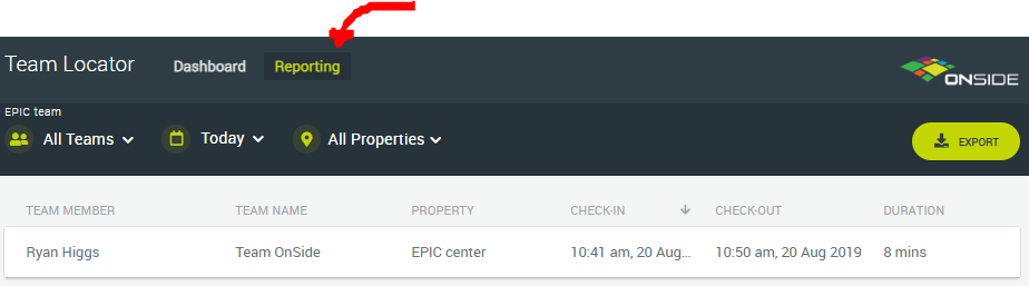 One of the best features of Team Locator is that you can generate a report whenever you need it. Click the 'History' button at the top of the screen.