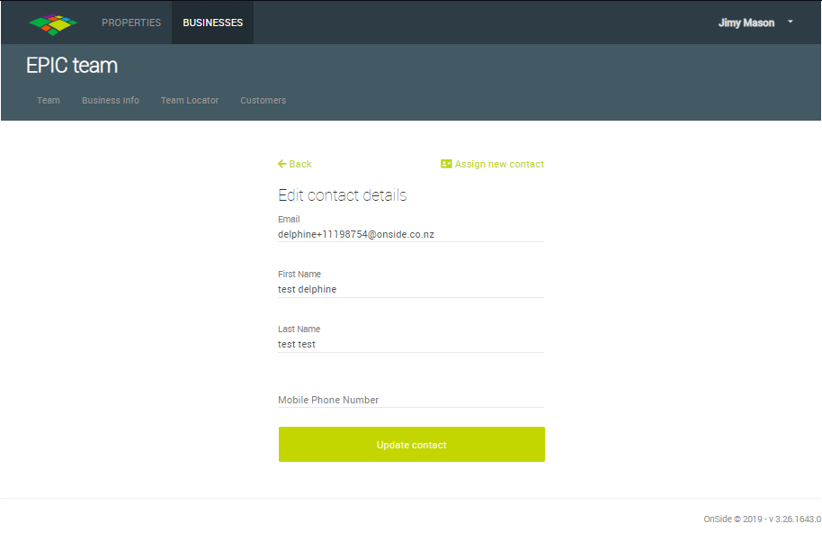 If you click on the contact name for a private property, you can change the contact person's details, or even assign a different contact person.
